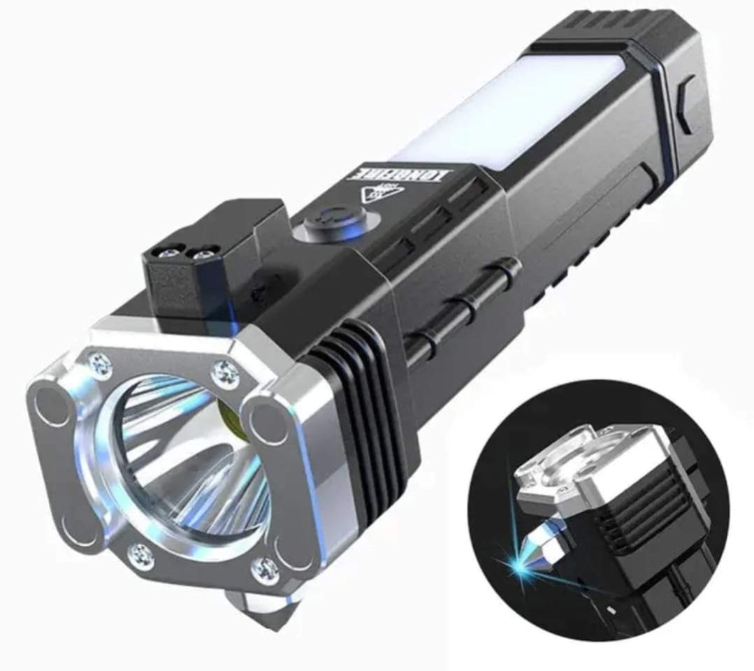 Linterna de seguridad puedes cortar el cinturón se seguridad y romper cristal por alguna emergencia dentro de tu auto